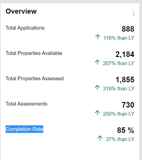 Completion Rate: This represents Total Properties Assessed / Total Properties.