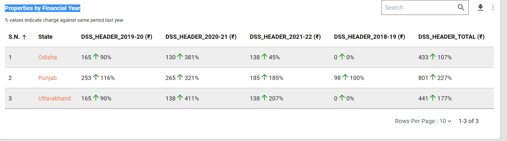 Properties By Financial Year: This table shows total number of properties which has been registered on the system for the financial years.