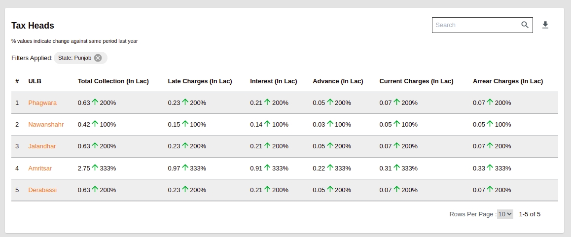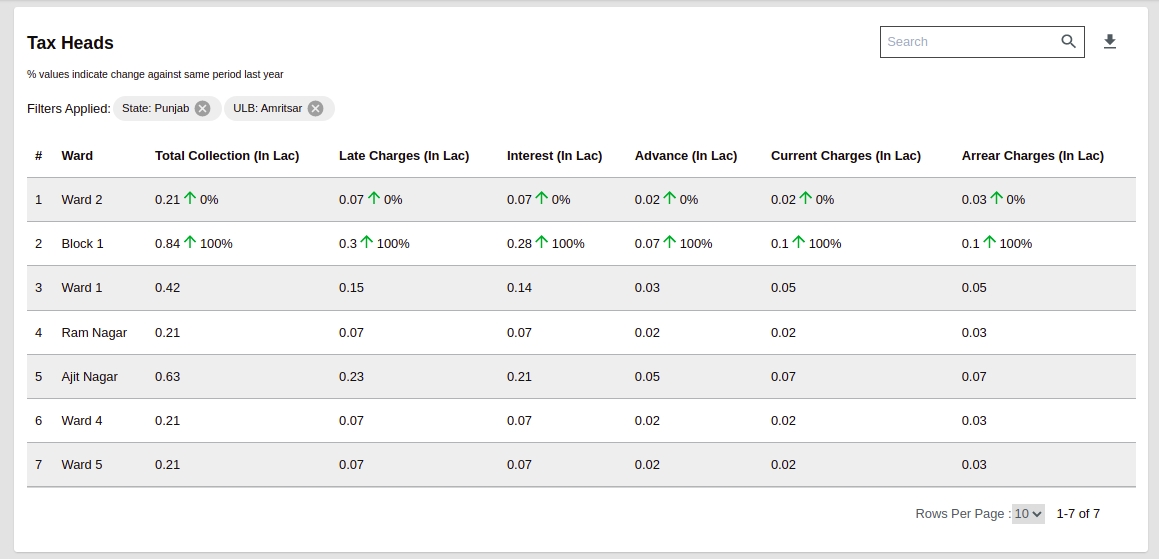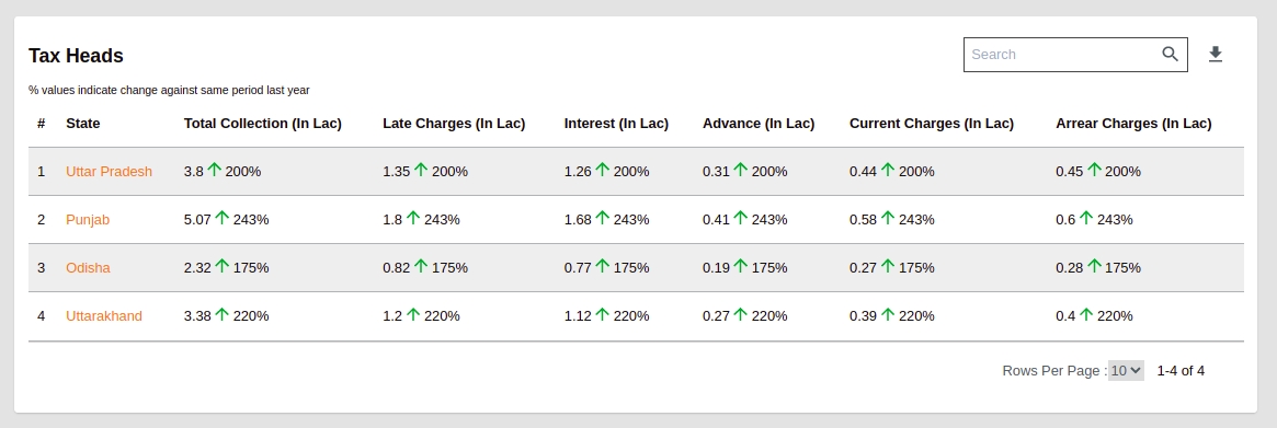 3.) tax head(INTEREST,LATE.CHARGES, ADVANCE, CURRENT.CHARGES, ARREAR.CHARGES), and