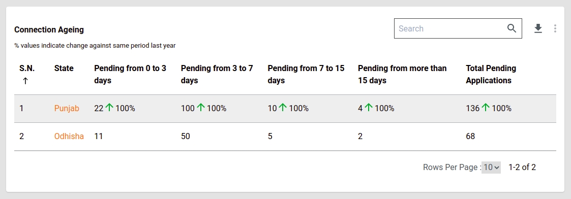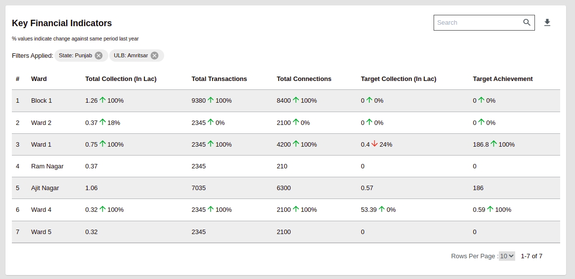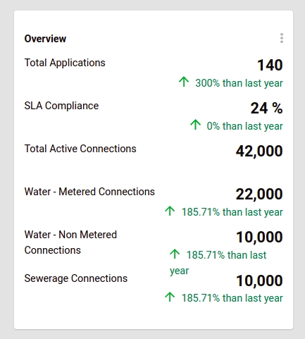 insights: This field shows the data in comparison to last year with arrow symbols that indicate the % increase or decrease.