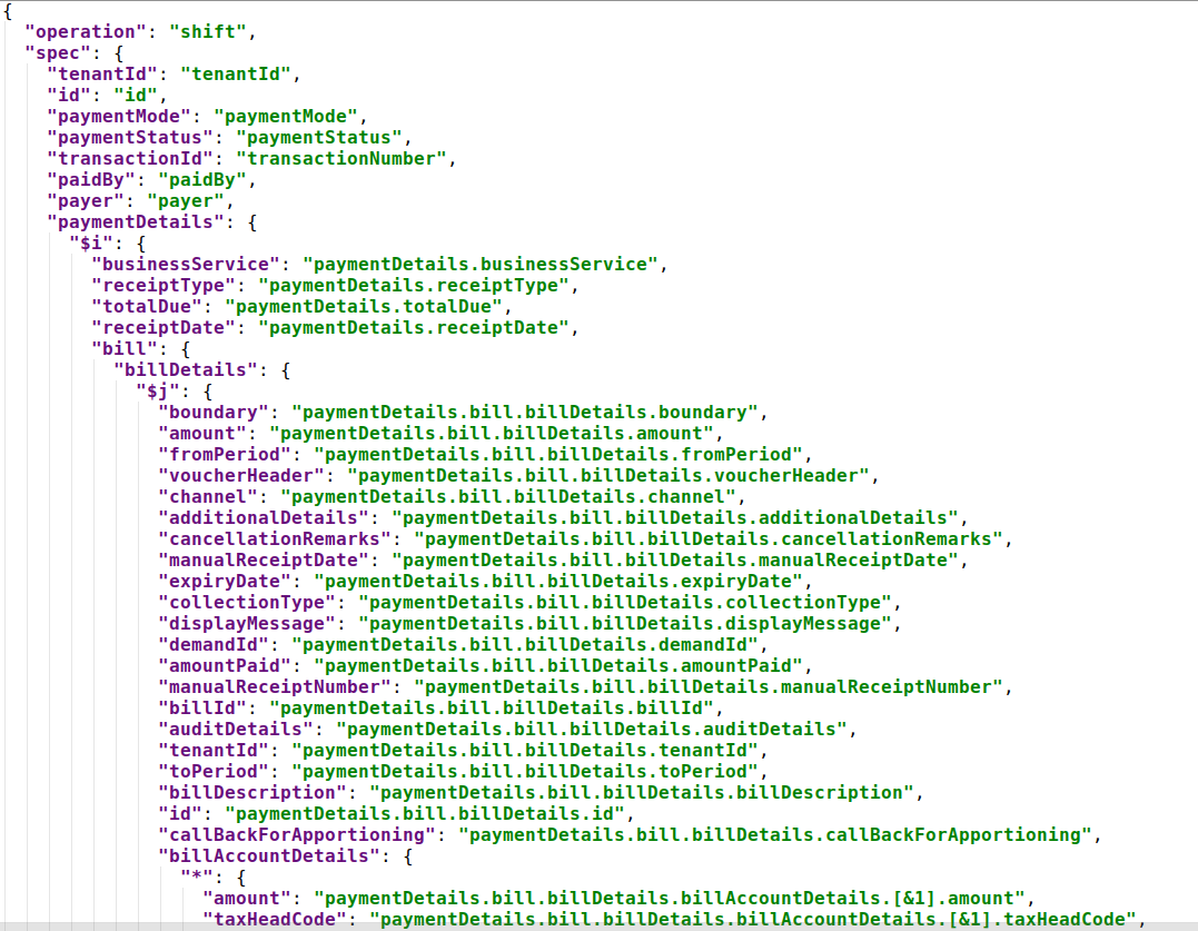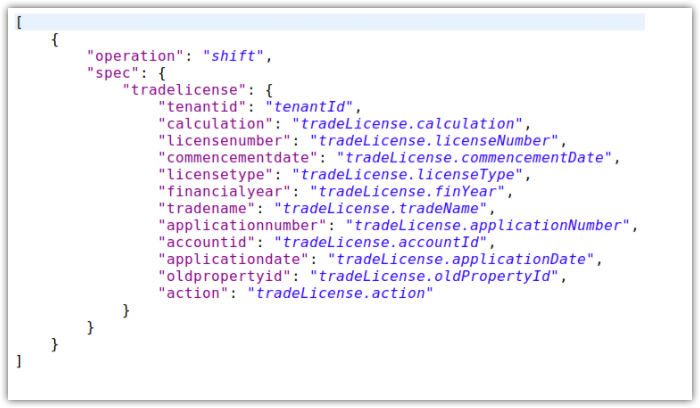 JOLT is a JSON to JSON Transformation Library. In order to change the structure of the data and transform it in a generic way, JOLT has been used.