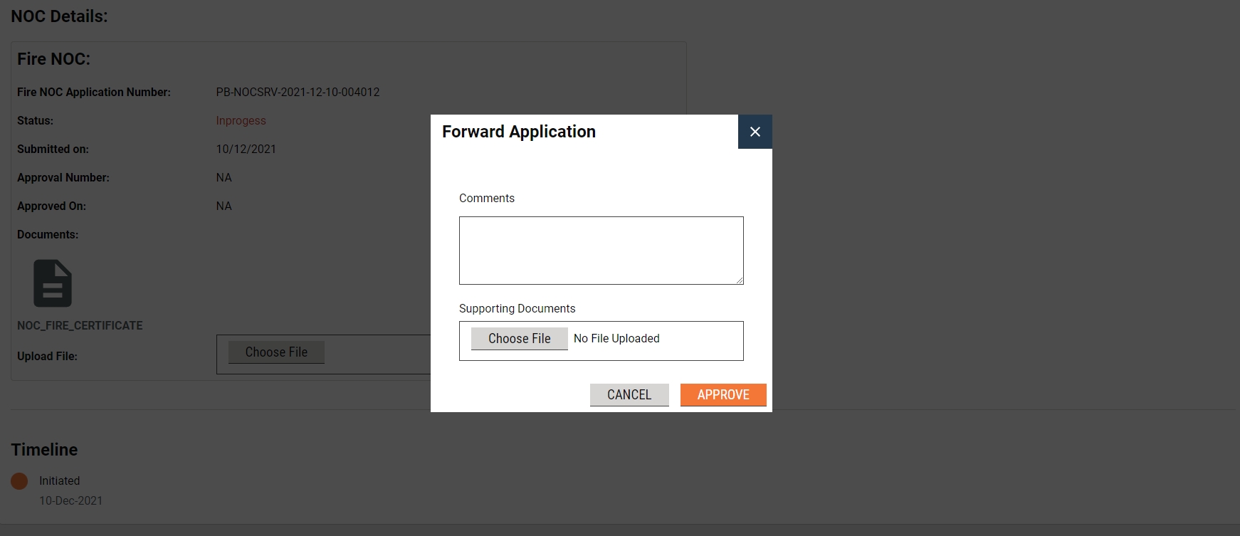 Forward application with the uploaded NOC certificate to forward the application to concerned authorities for approval.