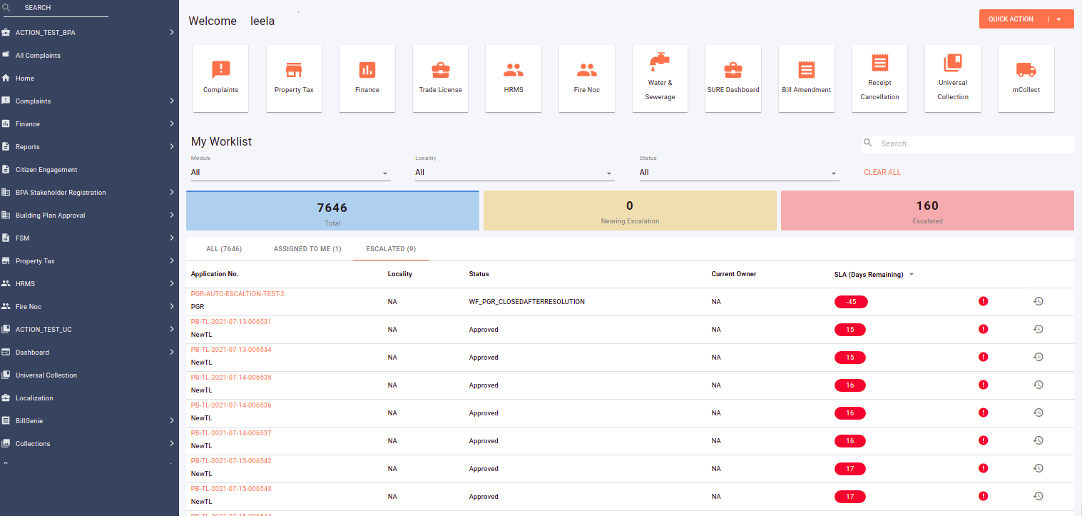 Route - https://egov-micro-uat.egovernments.org/employee/inbox
