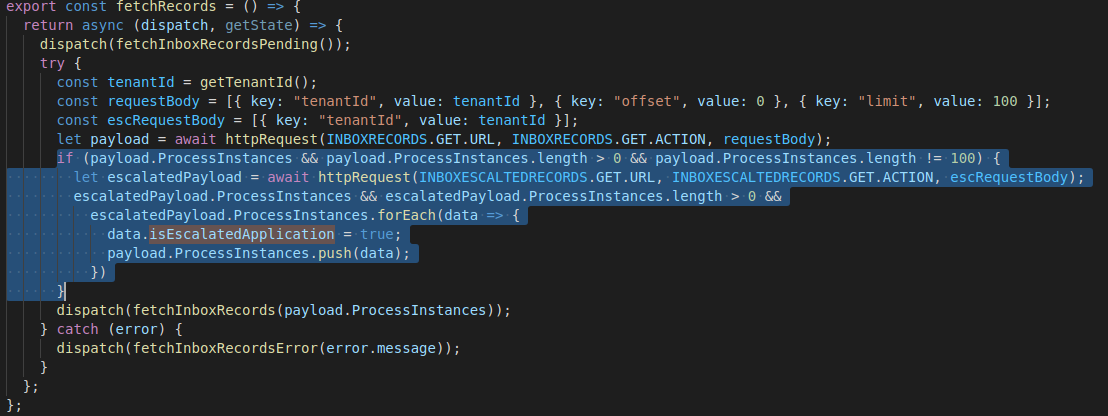 frontend/actions.js at master · egovernments/frontend. The escalated API is called based on given conditions.