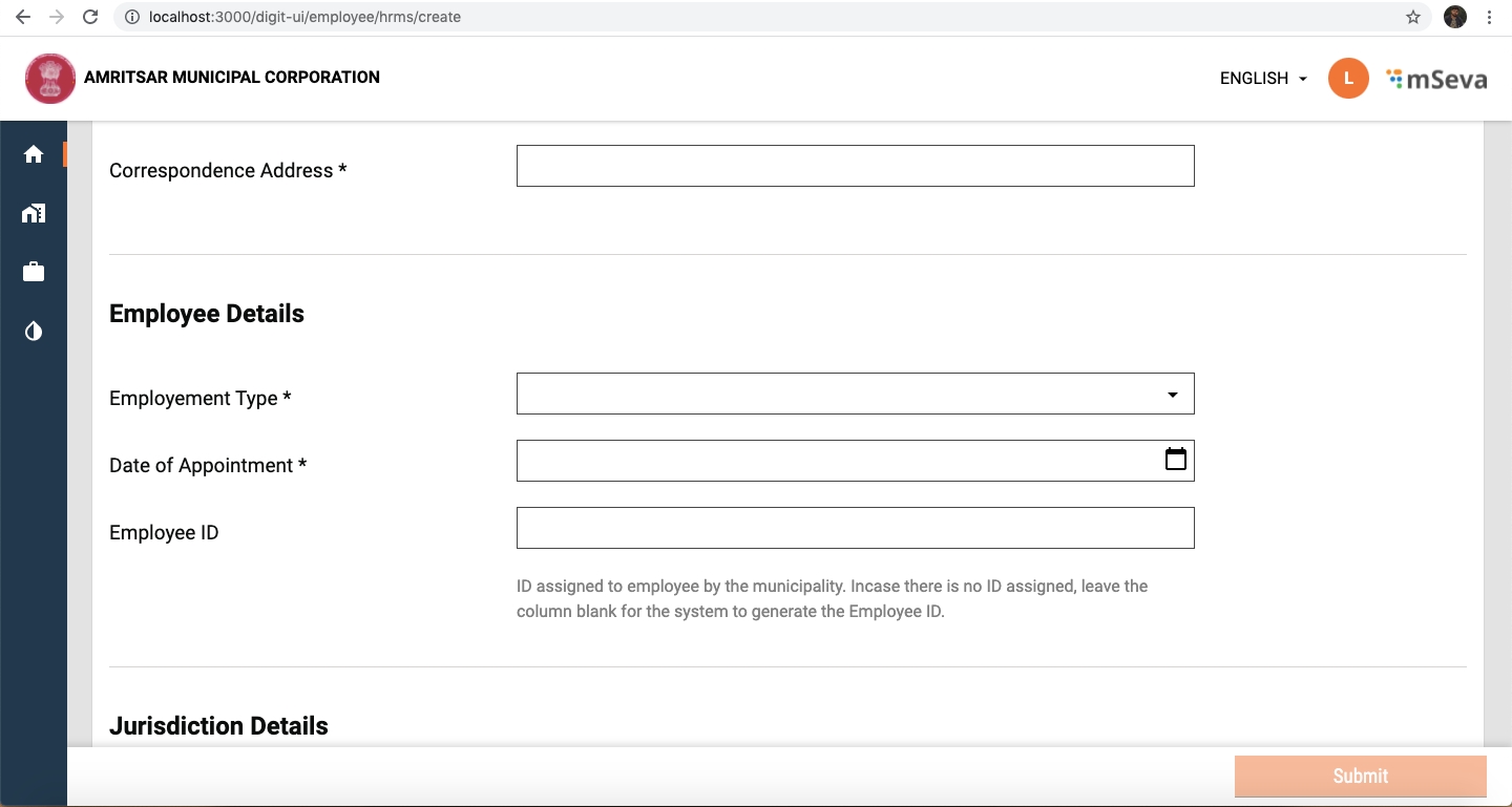 Primary Files: https://github.com/egovernments/digit-ui-internals/blob/development/packages/modules/hrms/src/pages/createEmployee.js