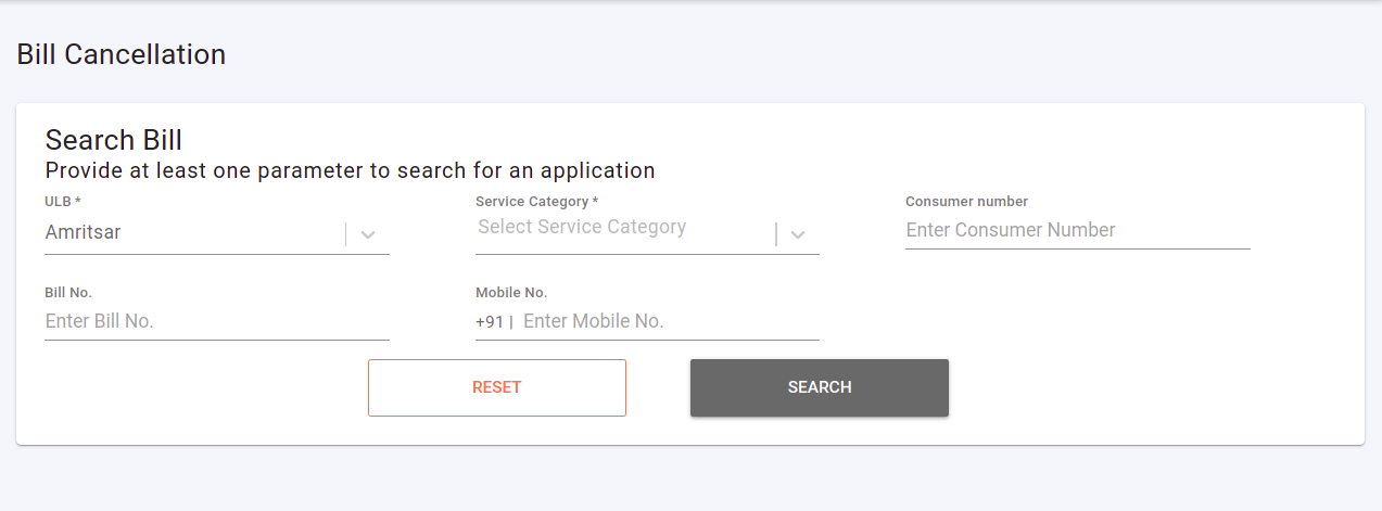 Click on the Bill Cancellation option. This routes the user to the search bill screen.