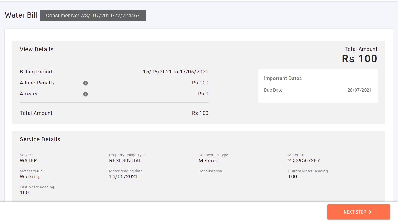 The details of the Bill are fetched by calling BillingService fetchBill API and the Consumer.No is used in the query param.