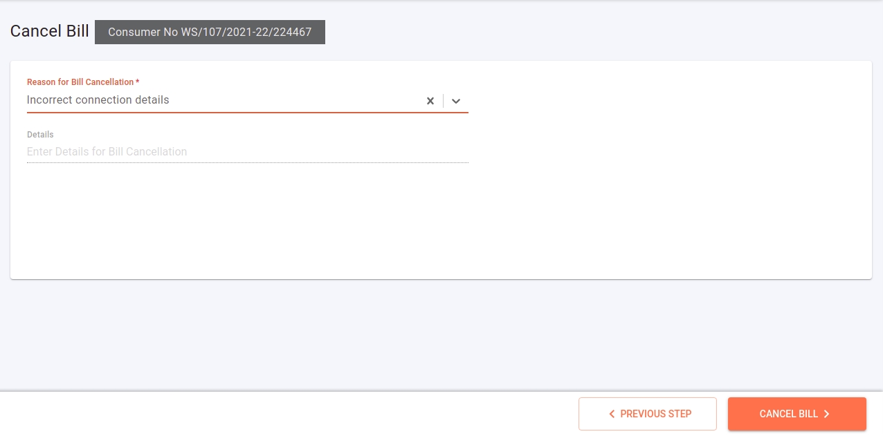 PREVIOUS STEP: Clicking on the Previous Step option redirects users to the bill details screen.