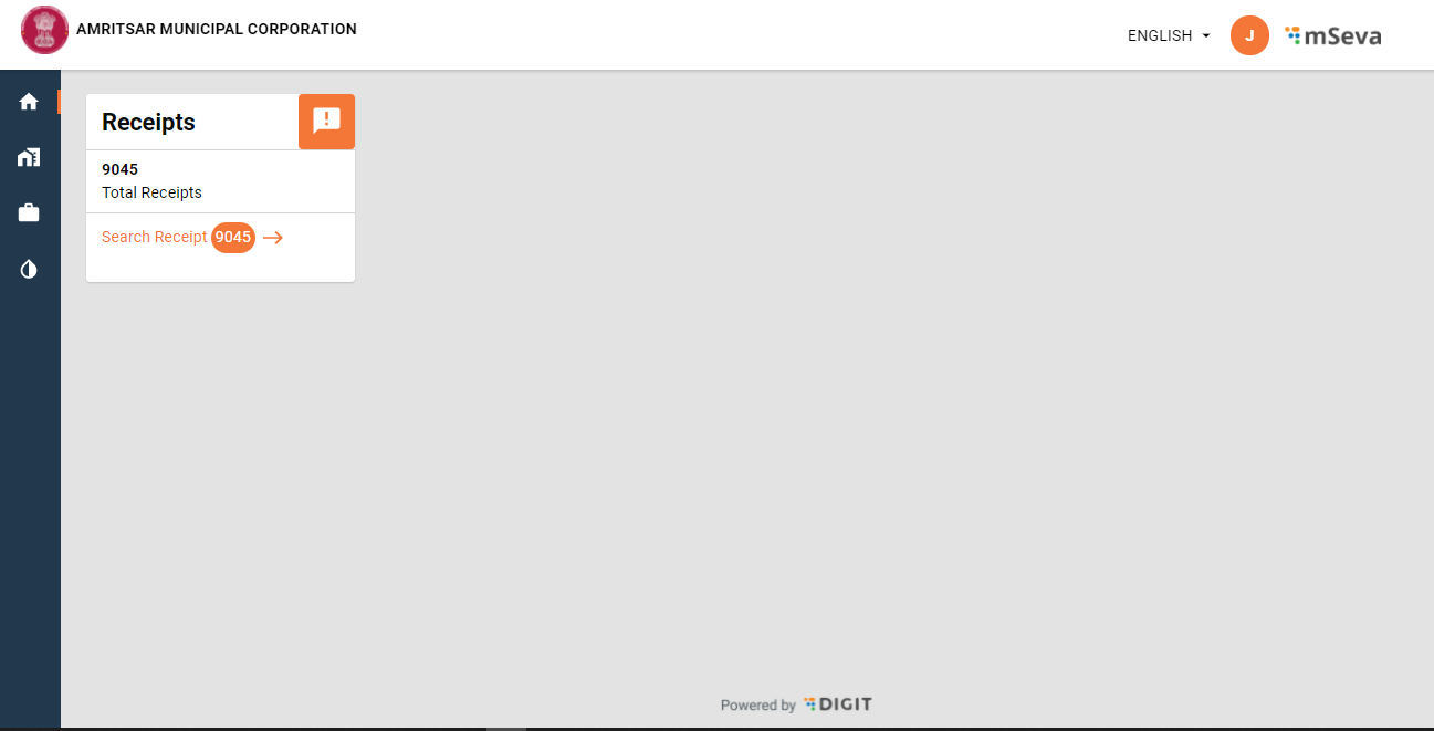 Once the user logins with the CR_PT role, the system displays the Receipts module card along with the Total Receipts count.