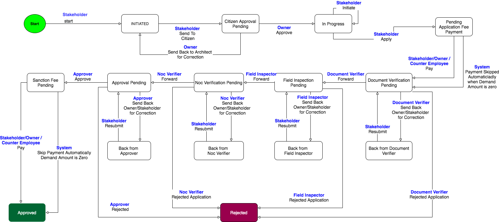 This section covers the high-level details of the functionalities available in the Building Plan Application system.