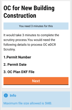 After verifying the details the user needs to upload the DXF file in order to generate the OC Scrutiny number.