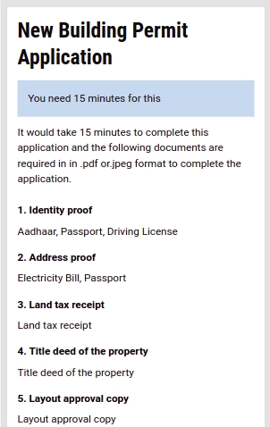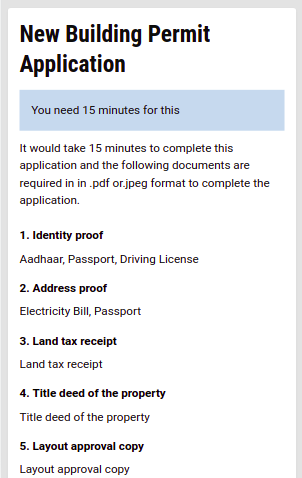 The Acknowledgement Page gets displayed. Users can apply for the building permit by clicking on the Apply for Building Plan Permit button. Or, they can go back and apply from the home page as mentioned in the previous section.