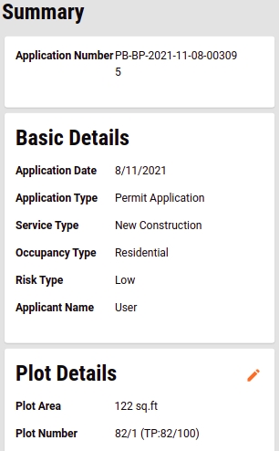 Once the user provides the Permit Number and Date, the application details are pre-populated.