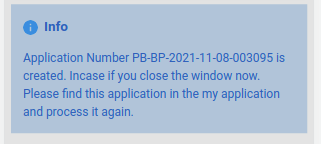 An info card is also visible which informs the user about the application number of the application created in the create API call.