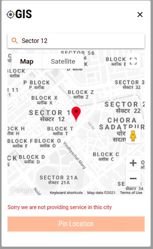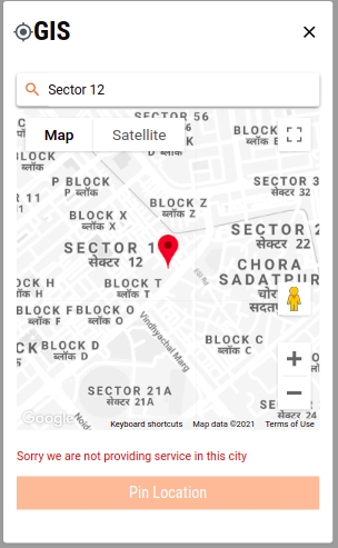 If the user does not want to select the location on the map, they can enter the Pincode. The city and locality get selected accordingly.