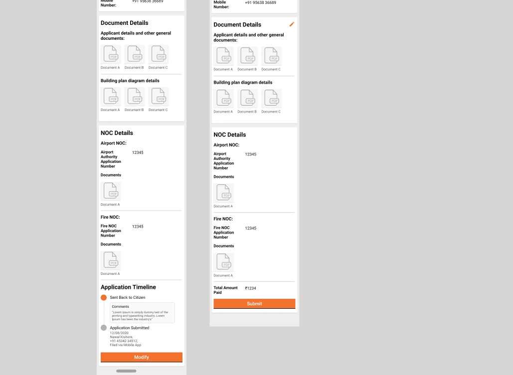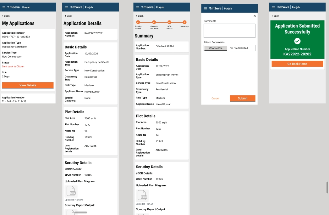 When employees click on the Send Back to Citizen button, the applications are routed back to the My Applications list of the citizen. The Application Details screen allows users to make the required changes. The forward action button routes the citizen to the Summary screen. Users can attach the documents and submit the application.