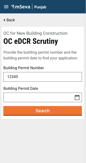 After entering the permit number and permit date, stakeholders need to click the Search button. Internally BPA and eDCR search fetches the required data.