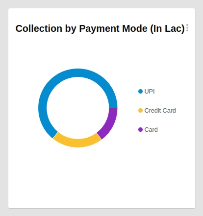 Collection by Payment Mode: This chart is a pie chart showing the bifurcation of total collections by payment mode (online, cash, card, cheque) which is the sum of revenue collected from the OBPS module for the applied date filter.