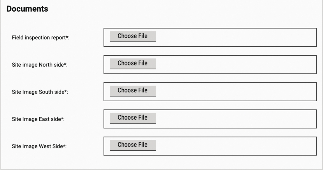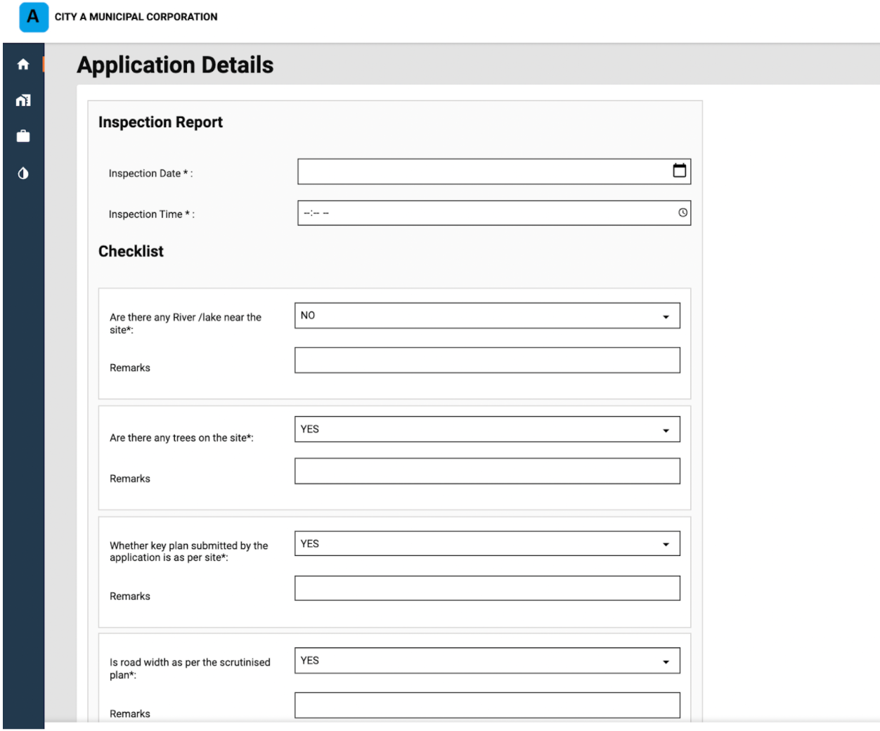 Scroll down the application page to review the filled-in details. Enter the Inspection Date and Inspection Time in the panel. FI can add multiple field inspection reports as required.