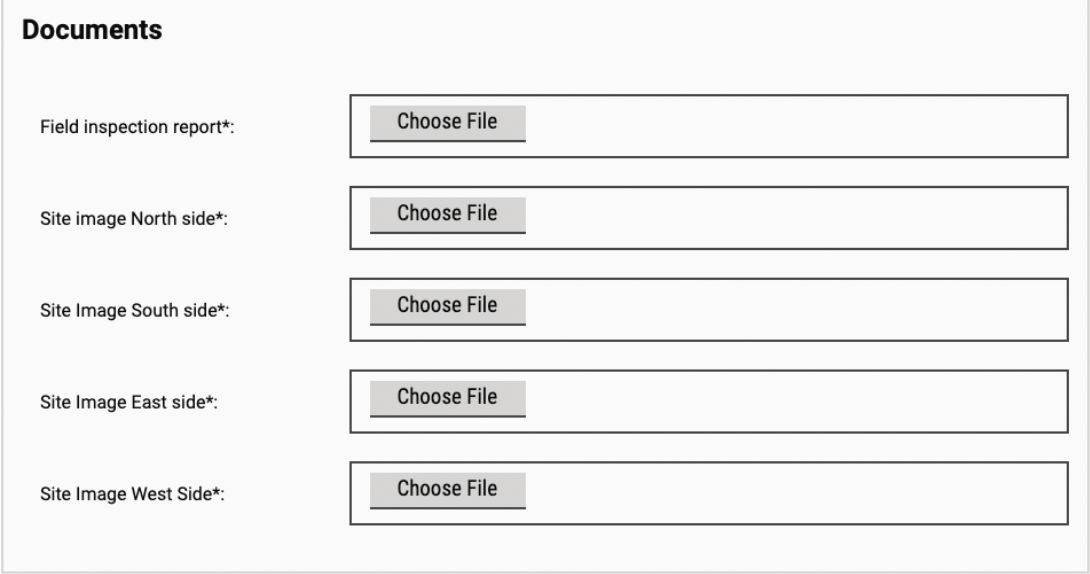 Select the applicable Document Type for each of the listed Documents. Click on the Upload File button to upload the relevant documents.