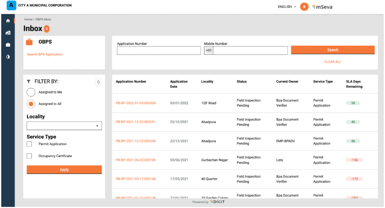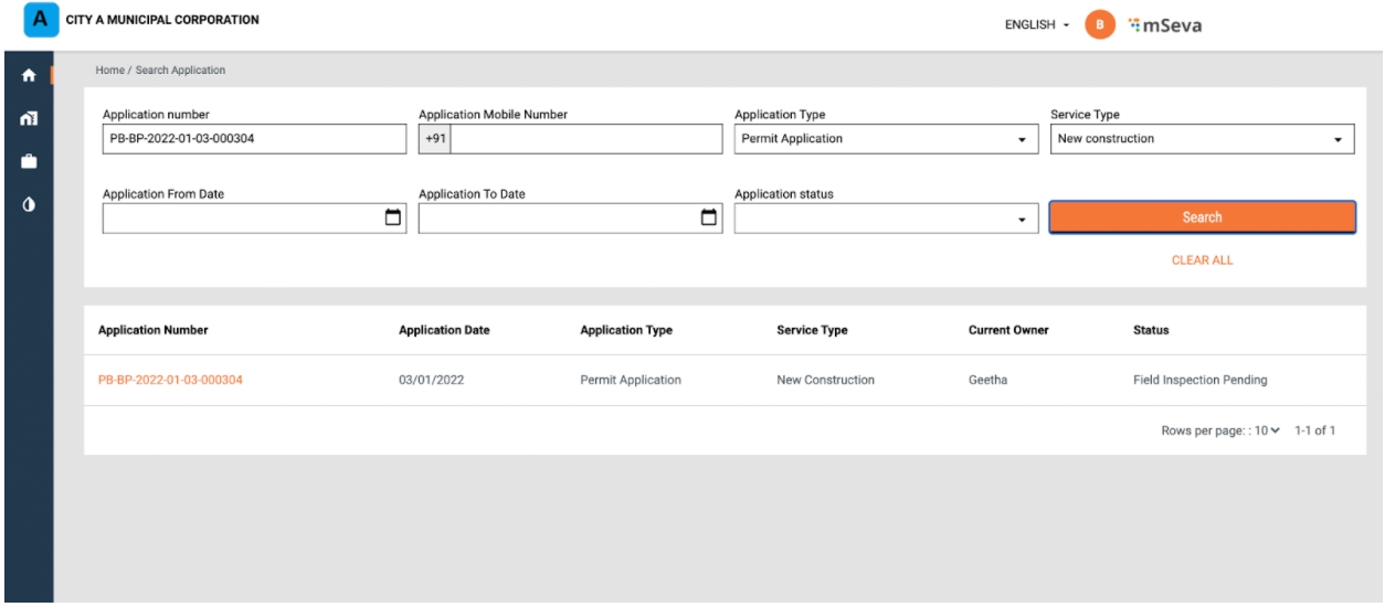 Or, enter Application No. or any other search parameter to search for the application. Click on the Application No. link to open the application.