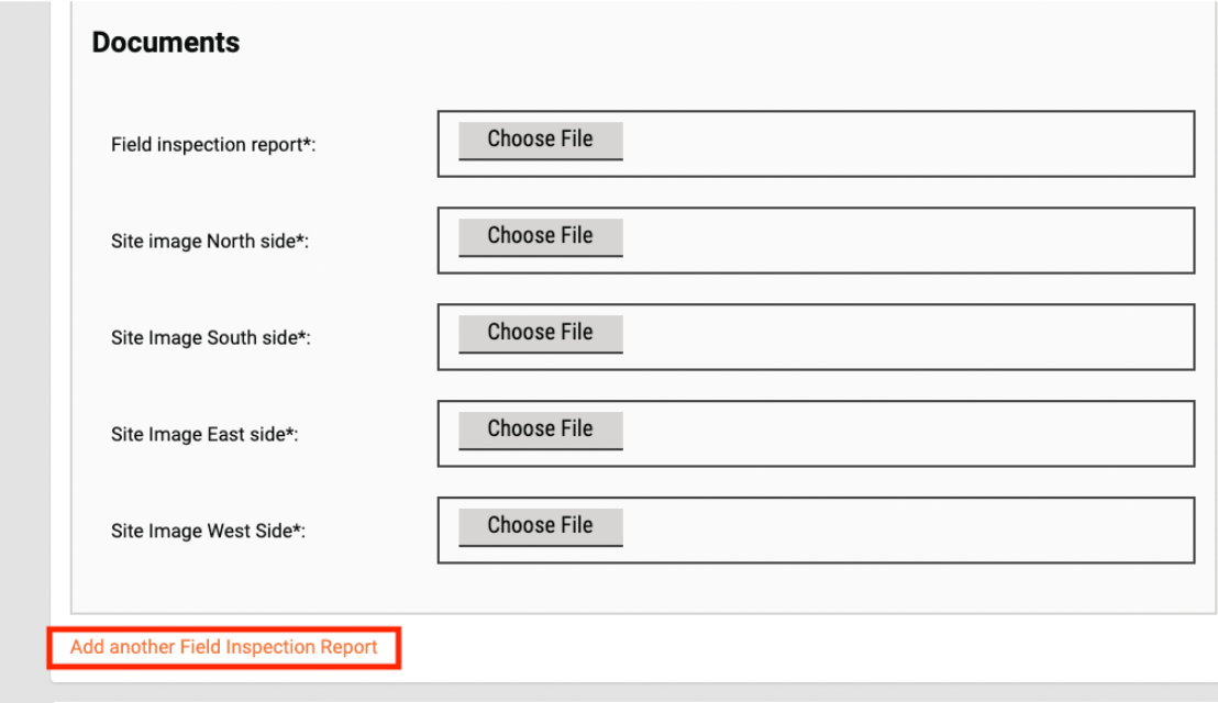 Click on +Add Another Field Inspection Report button to append additional inspection details.