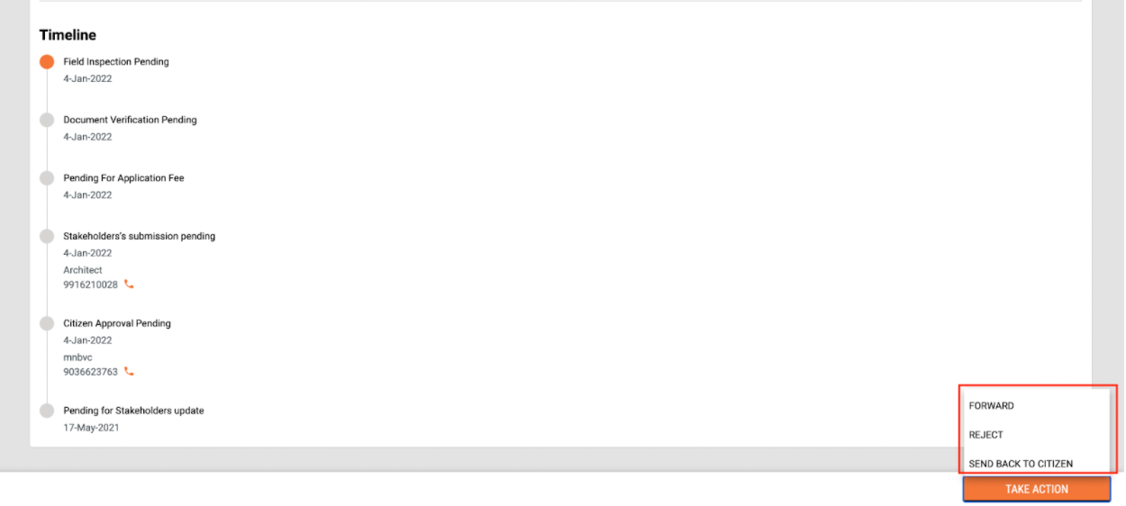 Click on the Take Action button at the bottom of the application page once the review is complete.