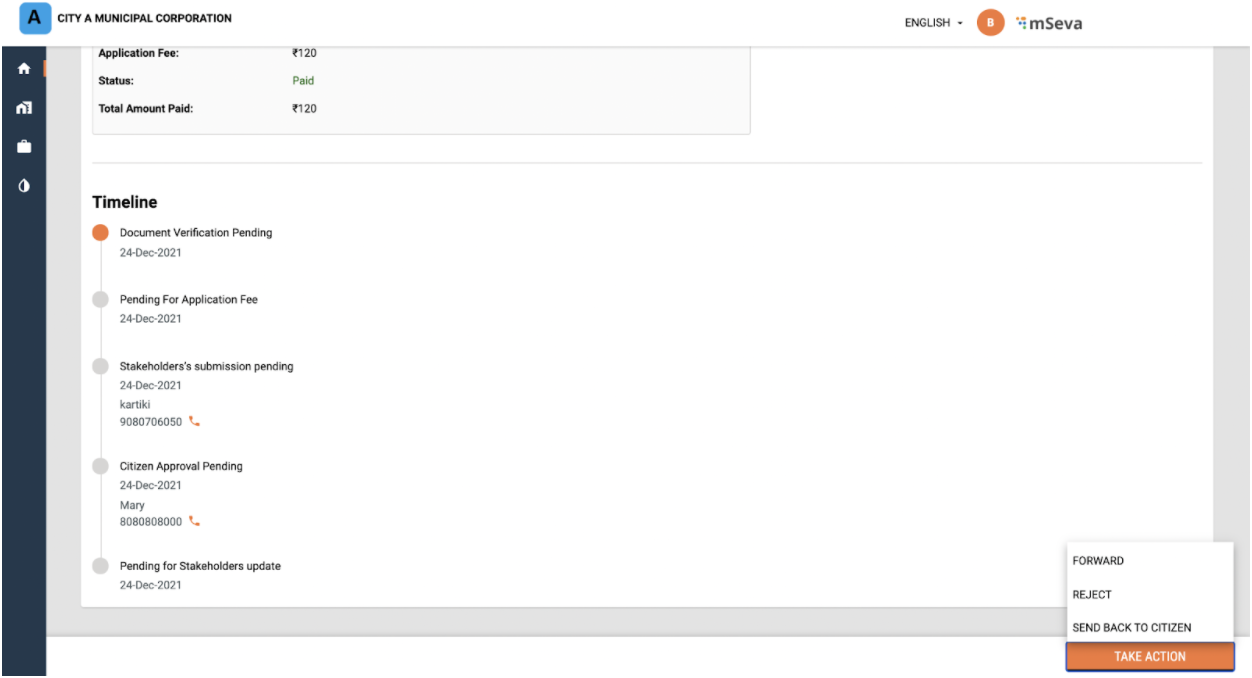 Employees can return the application to the citizen for corrections or if any vital document has not been uploaded. The employees can also upload the documents on behalf of the citizens.
