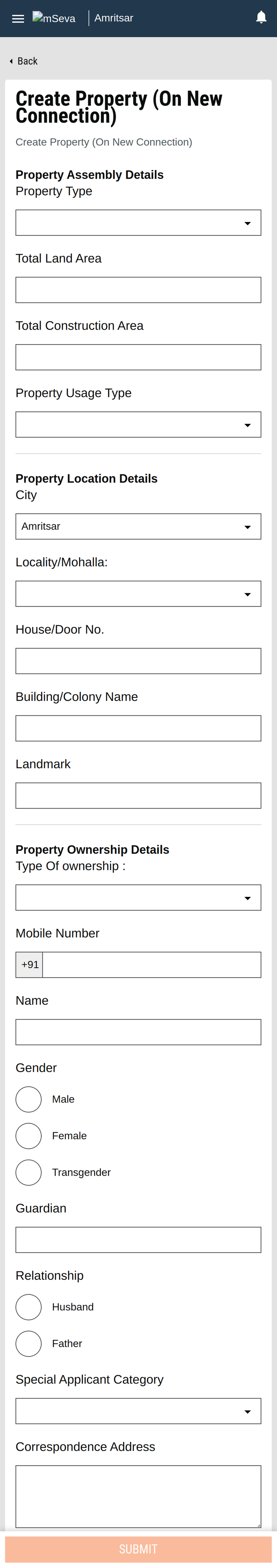 Clicking on Create New Property button, redirects users to create a new property page form. Users can enter the property details to be registered.