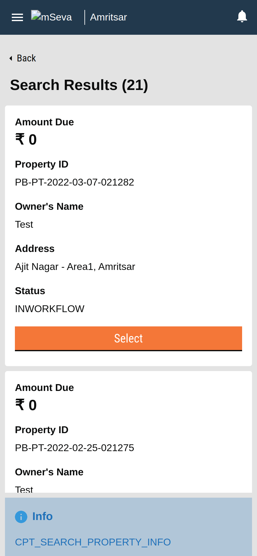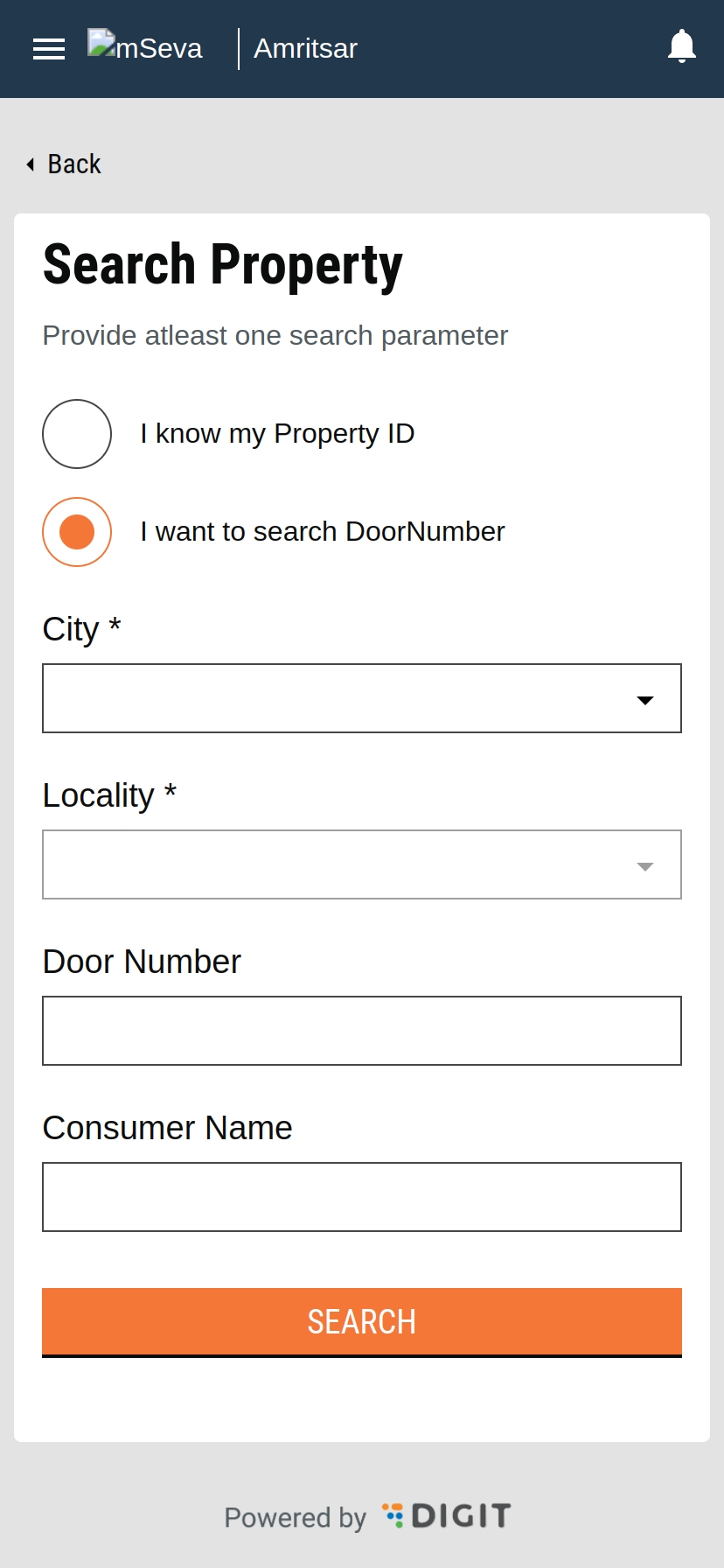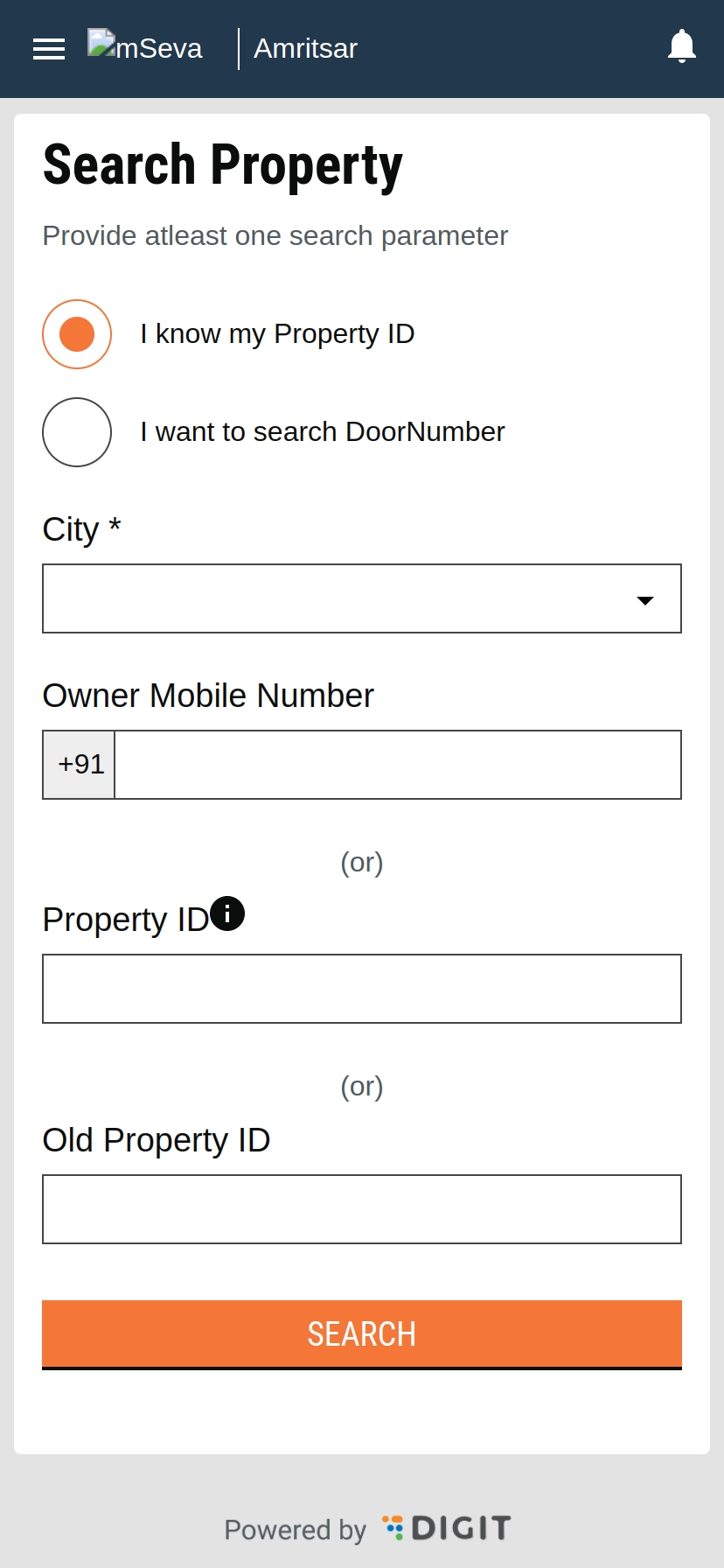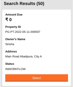 CommonPT module provides two ways to search for a property. Users can search for a property either by Property Id or by Door Number.