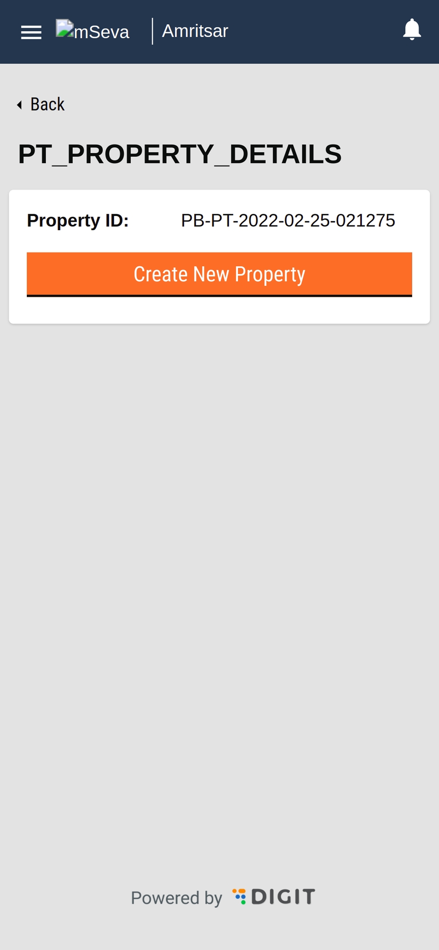Users are redirected to the Property Details pages where the user can create new property using the existing property ID.