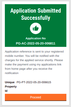 Create a new lightweight property during the trade license application process. Once the acknowledgement page is displayed, the Proceed button is enabled to move forward with the flow.