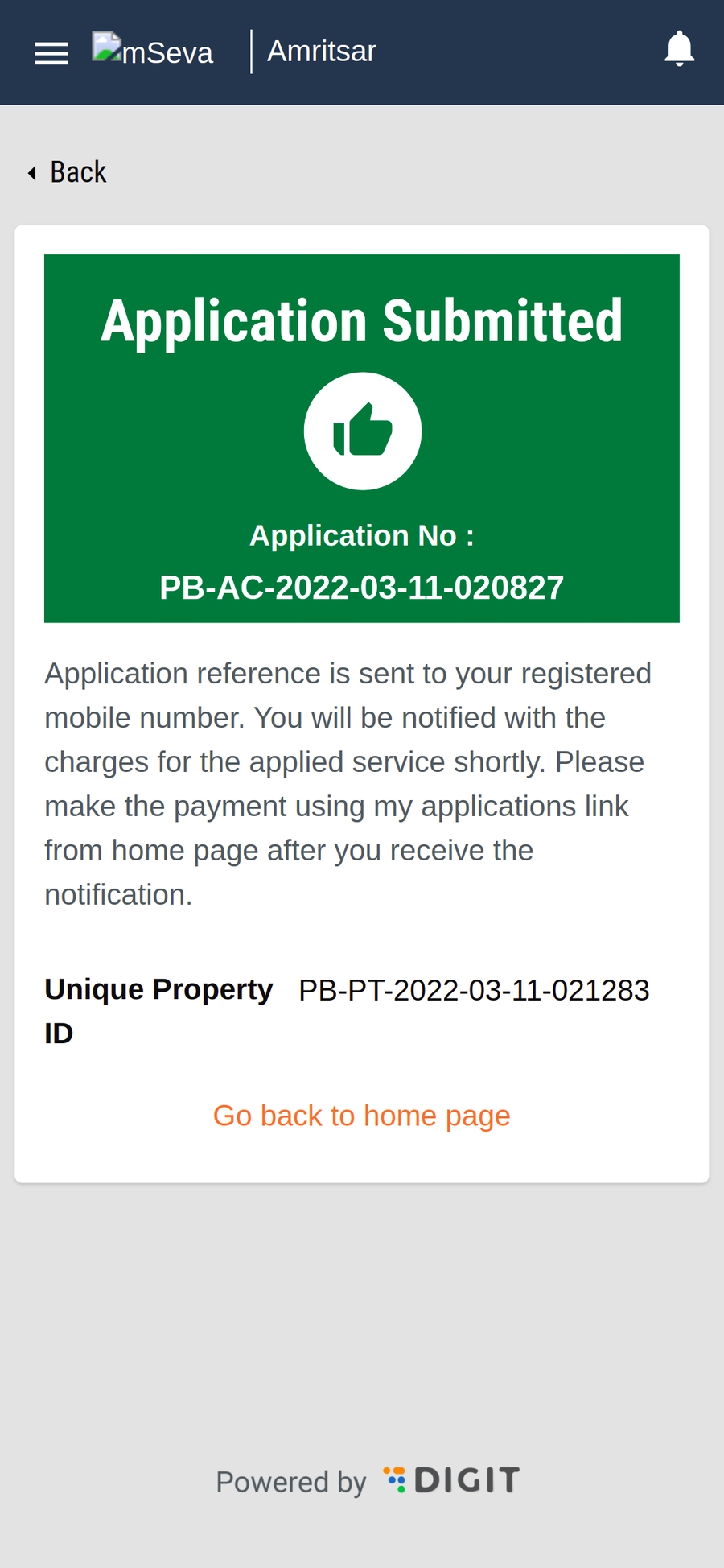 After filling in all details users can submit. The Acknowledgment page displays the application status as either Success or Failed along with the application number.