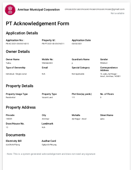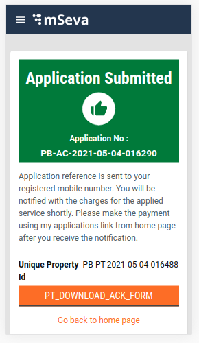 After completing the flow users can download the acknowledgement details of the property created in pdf format. Click here to find the config for the PDF generation.
