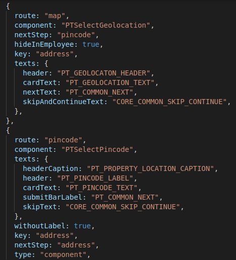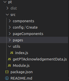 PT (Property Tax) Module has been segregated into a specified structure. All the screens configuration is available inside the PageComponent Folder. The configuration for routing the pages are mentioned in the config folder common for both citizens and employees. The snippet for the folder structure and routing configuration is given below.
