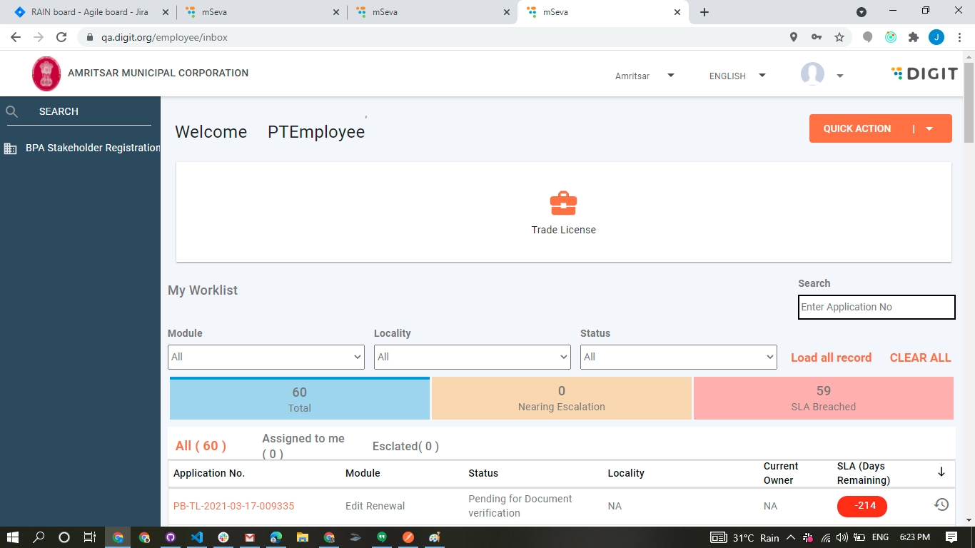 Objective: Provide employees with the options to view the assigned, escalated applications and the applications that are pending for action.