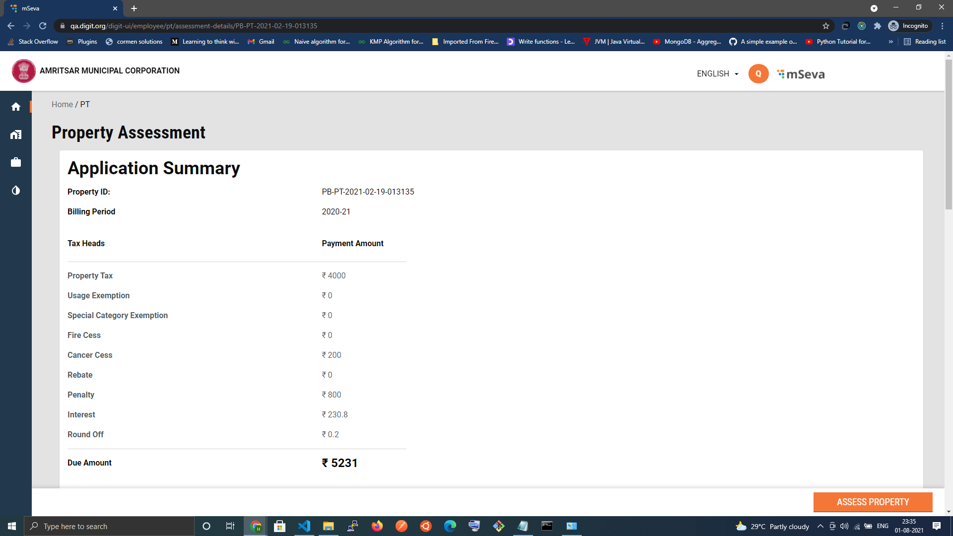After clicking on Assess Property, the button changes to Proceed To Pay that redirects the employee to the common pay screen.
