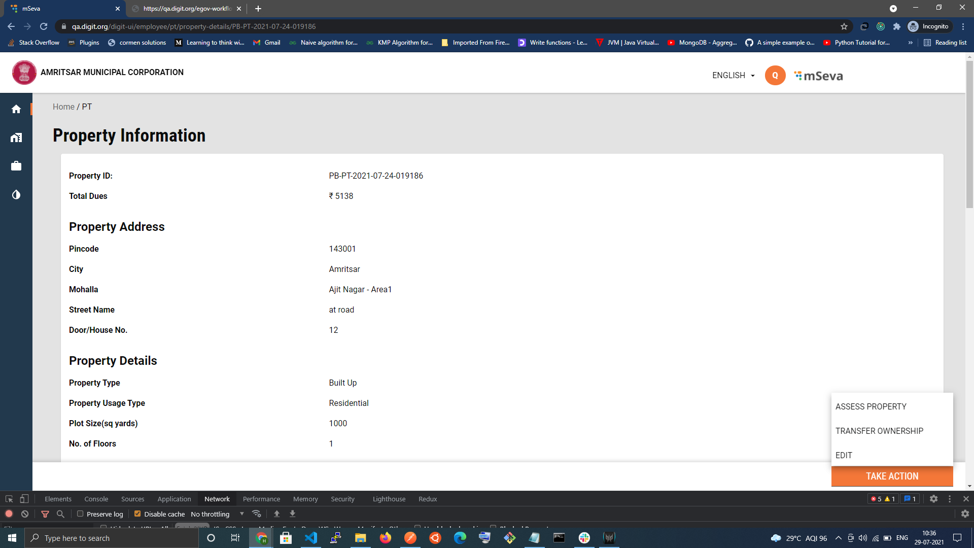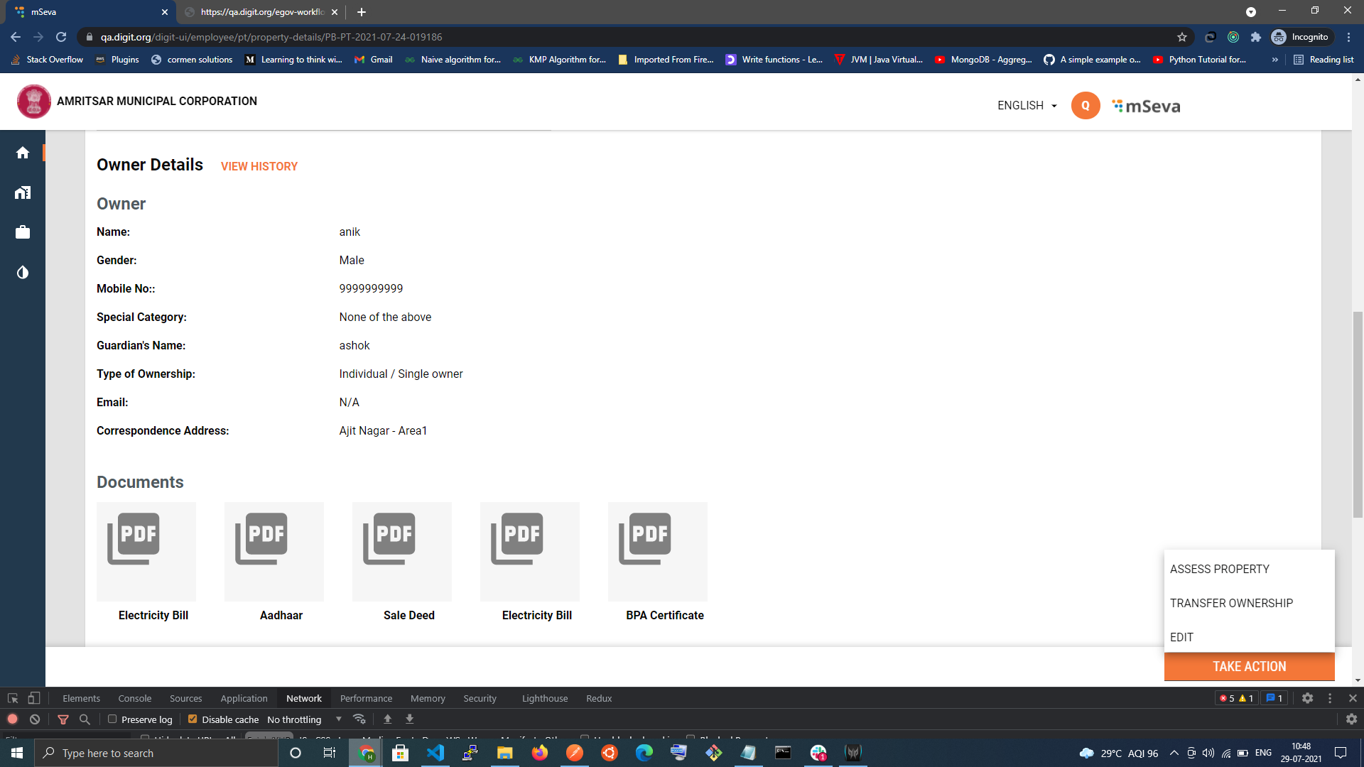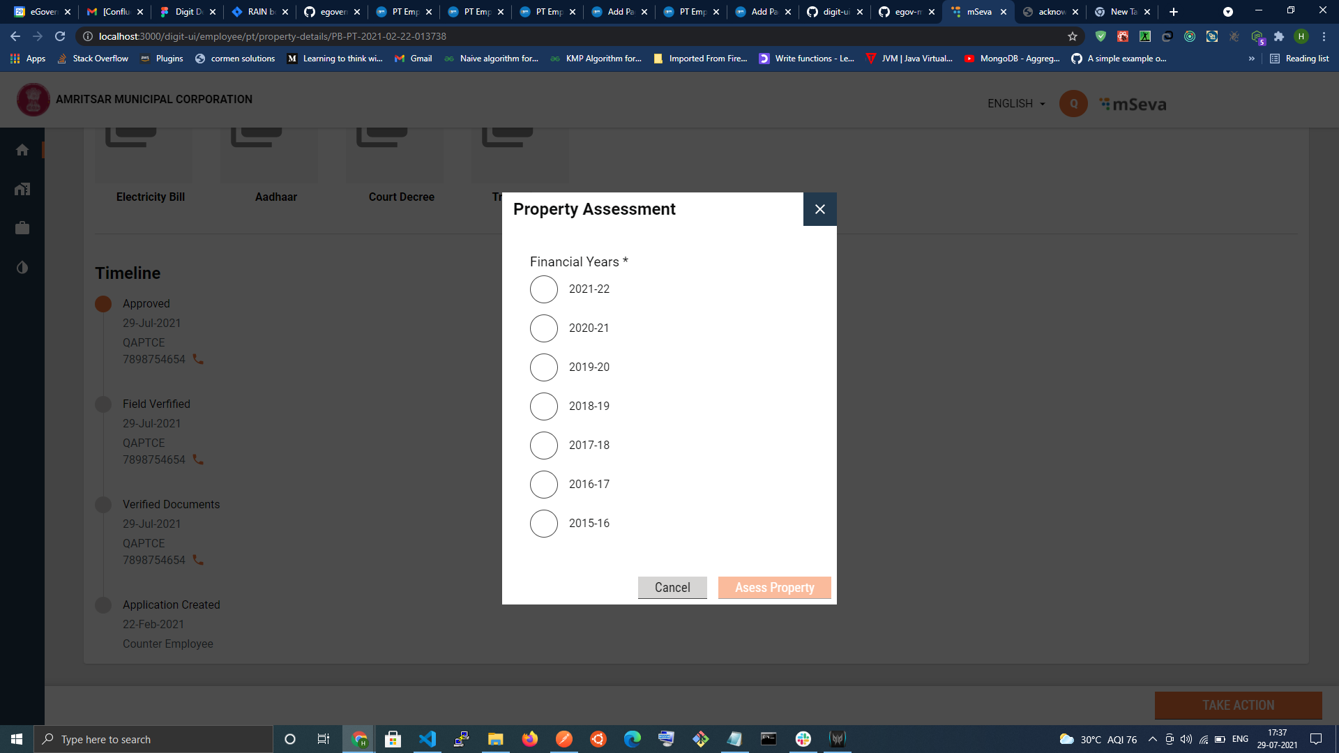 Users can also view the current property Details page, to view Property Details, where employees can perform actions like assessment, Updation and Mutation, on an approved active Property.