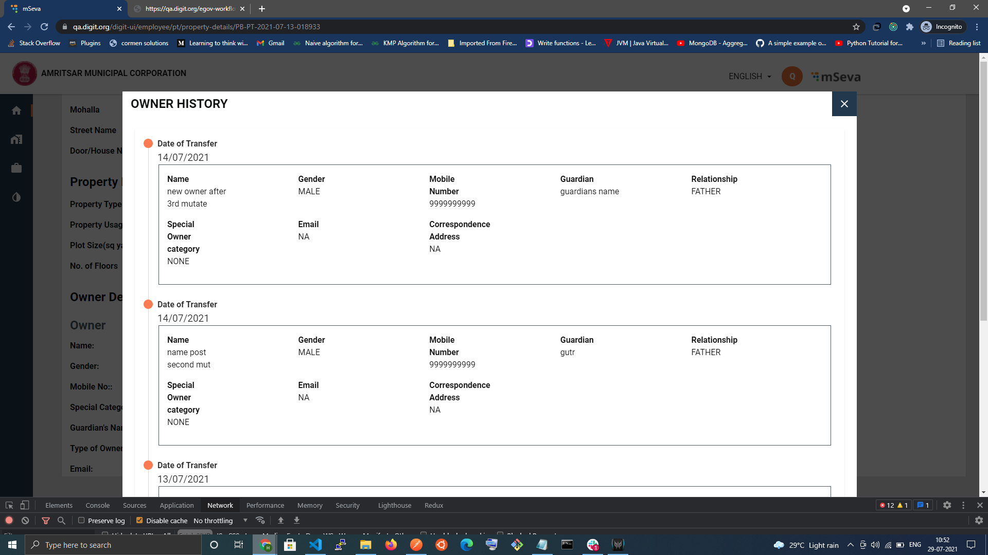 Objective: To provide employees with the functionality to search properties (either in active or in workflow status) based on locality, owner mobile, or unique Property Id.