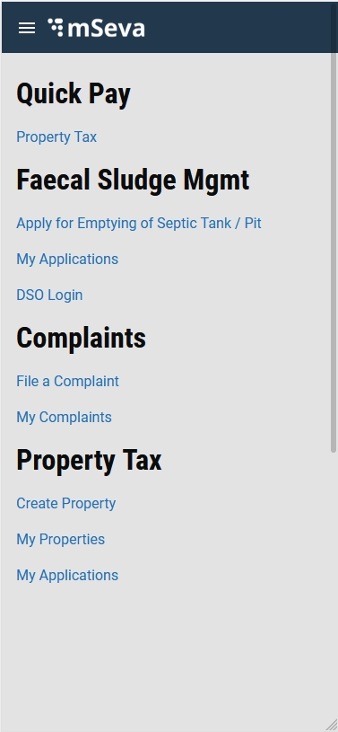 My Bills page only displays the properties with pending taxes linked to the mobile number used to log in. To search and pay for any other property, users can click on the link below the My Bills screen that redirects the user to the search screen.
