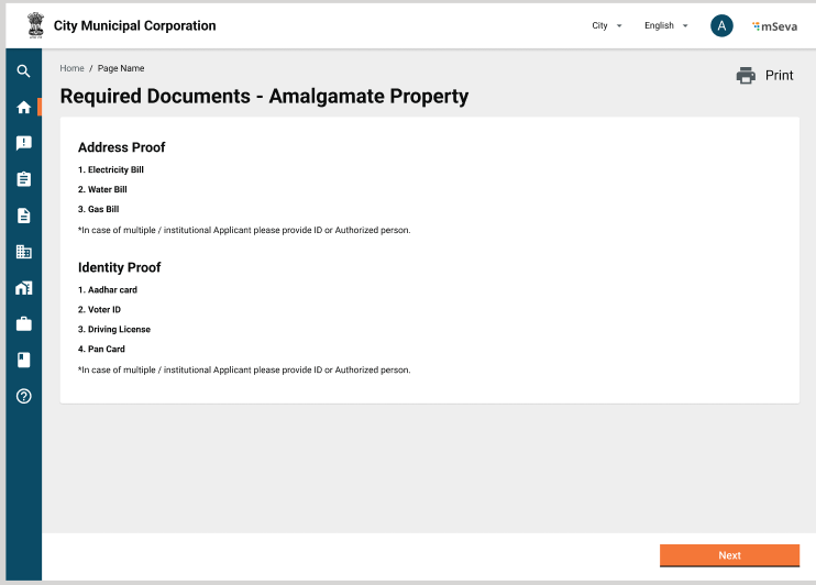 The amalgamation is considered a service and the owner(s) has to apply for it. A single application is created for the amalgamation of properties with details of all the properties and the required documents are produced in support of the application. There is no application/ processing fee associated with the amalgamation of properties.