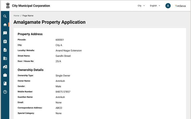 There should be any application in flow for other services as well linked with a merging property. E.g. Water Connection, Sewerage Connection, and Trade License.