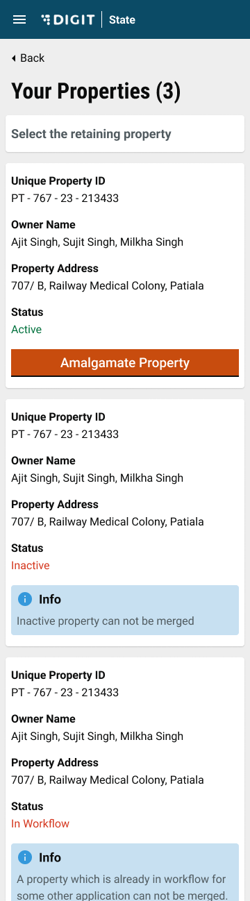 Step 1: Select the Amalgamate Property option.