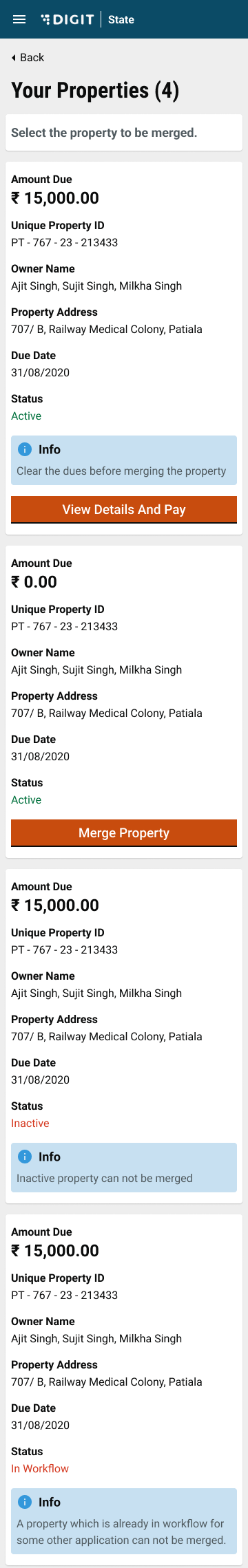 Step 2: Select a property to merge.