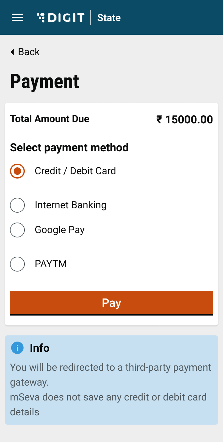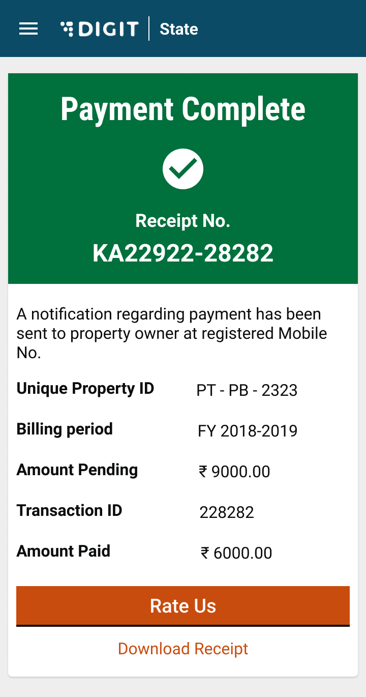 According to the response received from the payment gateway the success/failure message is displayed. Click on the Download/View Receipt button to download the payment receipt.
