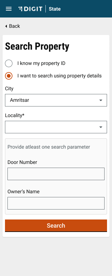I want to search using property details - Select the City (mandatory) and the Locality (mandatory). Enter at least one of the 2 given parameters listed below -