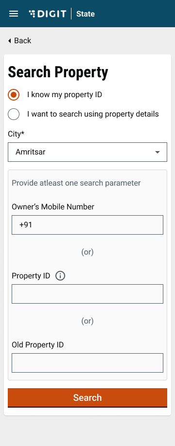 I know my property ID - Select the City (mandatory) and input at least one of the 3 given parameters listed below -