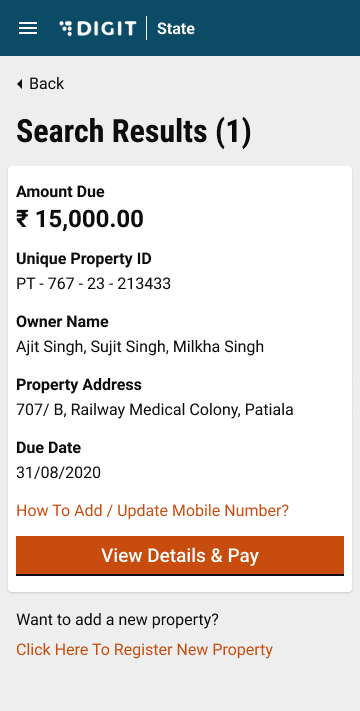 Search for the relevant property using search filters. Click on the View Details button for the applicable property.