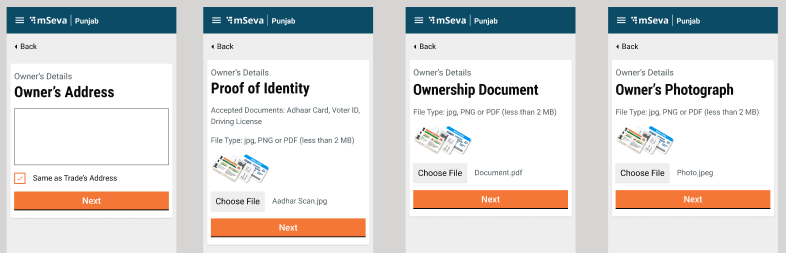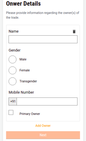 Owner Details Flow - Finally, the users need to enter the trade owner details. Ownership can be Single or Multiple Owners. According to which the details are filled.