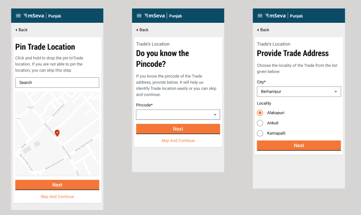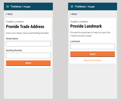 Common PT integration with TL: After entering the trade details, users have the option to either search and integrate the already created property or create new lightweight property data for the trade license. This step can be skipped and users can proceed with the normal address details flow.